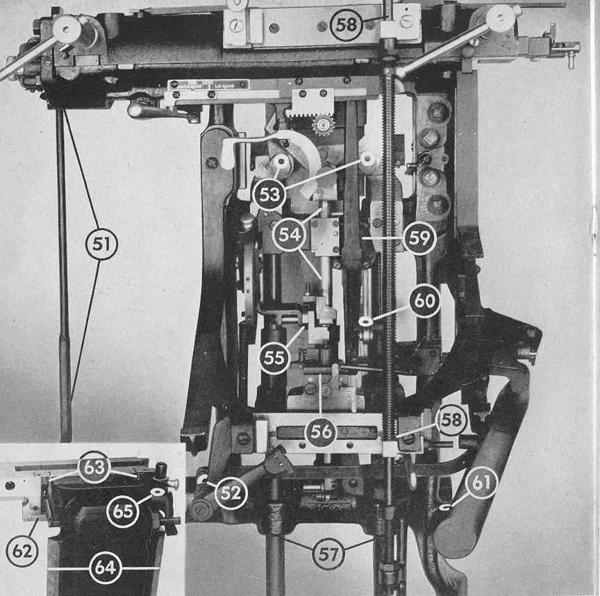 NOTE: For location. of lubricating points and recommended lubricants, consult the instructions and illustrations in the second section of this booklet. For machine adjustments and mechanical descriptions of functions, see the official Linotype manual, "LINOTYPE MACHINE PRINCIPLES:" This is a 487-page completely indexed book which can be procured at any Linotype agency. Price $3.50 postpaid to any part of the United States (X-1752).