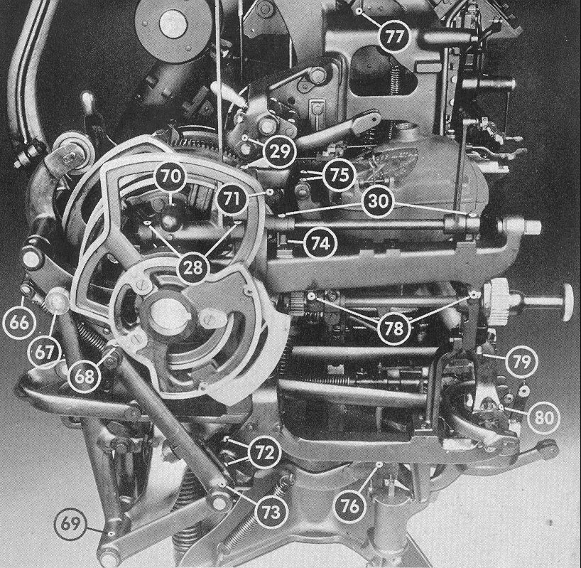 26 Assembler Entrance (Upper) Finger Key Shift Operating Cams and Rolls (one on Model 29) (two on Model 30) **