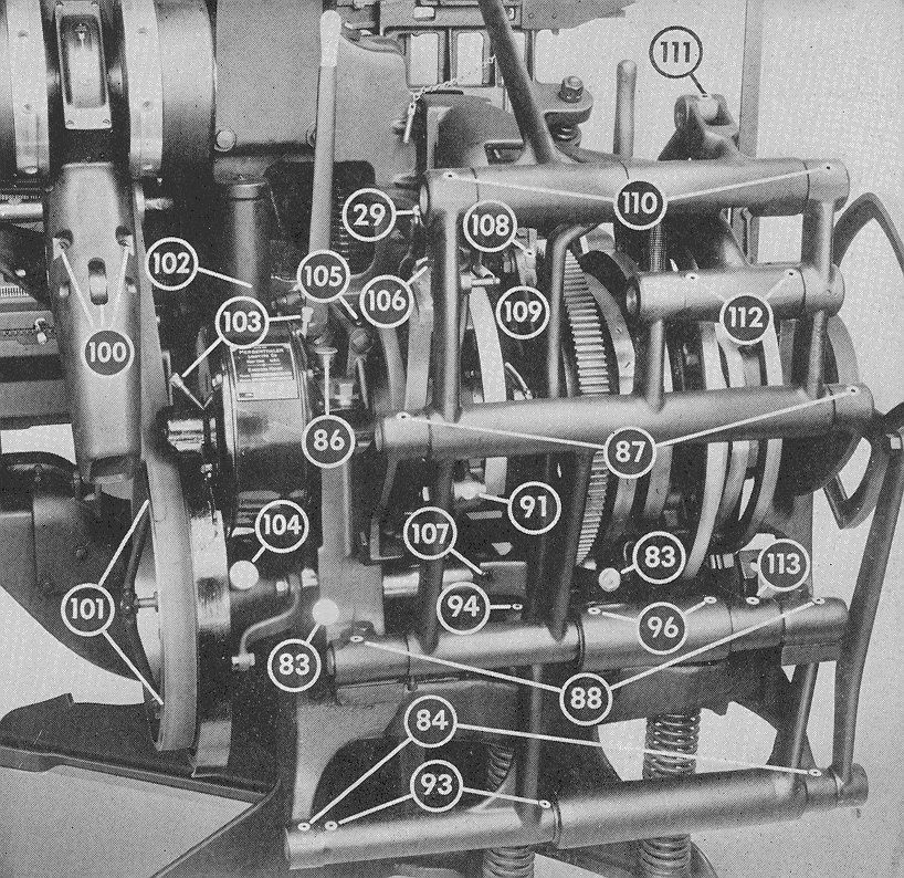 103 Motor Armature Bearing Grease Cups (2) (NOTE: A medium ball-bearing grease should be used on the type of motor illustrated. For older style motors having oil cups, use Linotype oil X-24.)